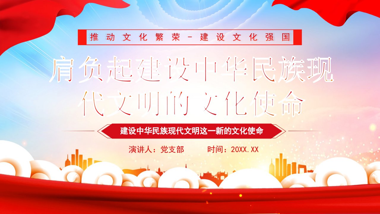 2024微党课肩负起建设中华民族现代文明的文化使命党课ppt模板(带内容)党支部党课ppt模板下载