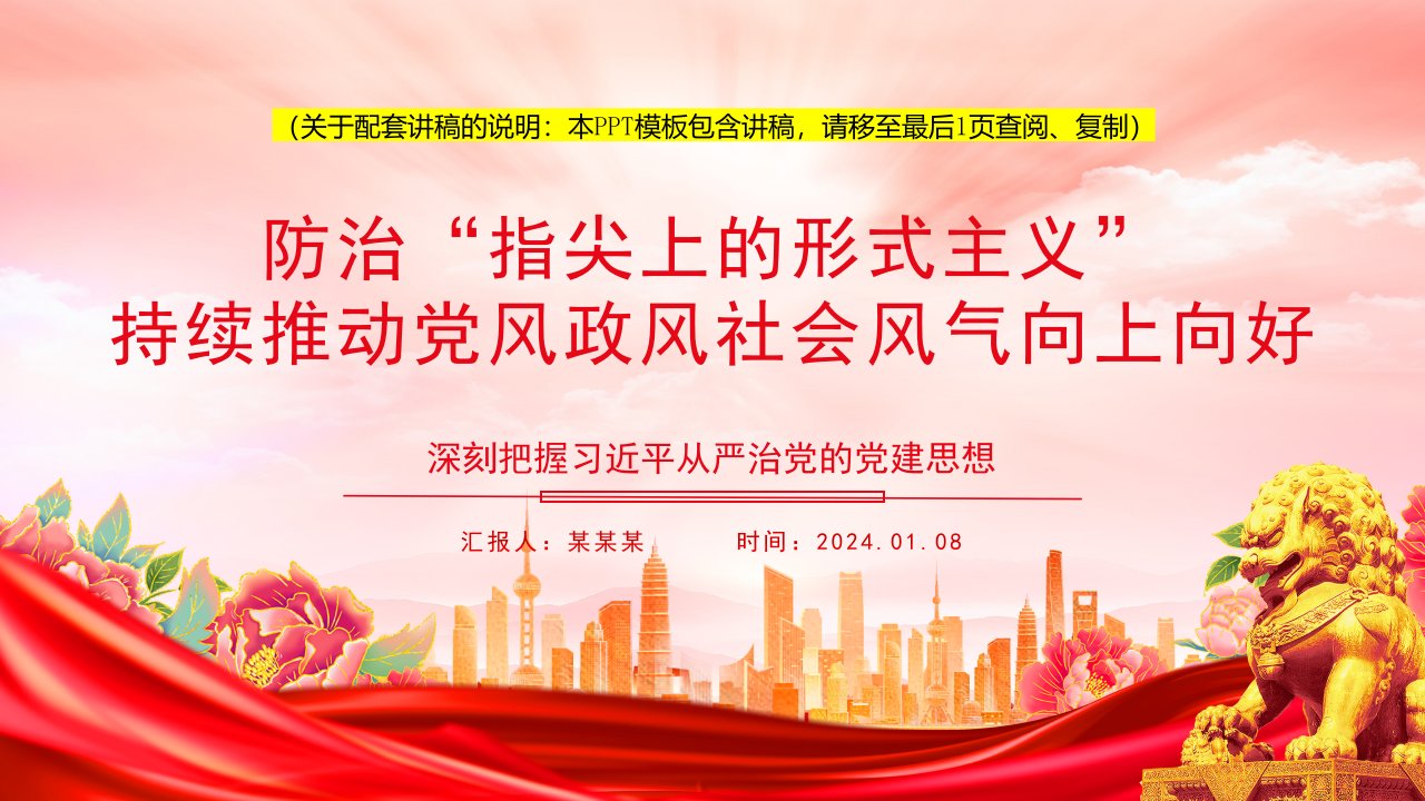 2024坚定防治“指尖上的形式主义”持续推动党风建设积极向上党课ppt模板(含配套讲稿)习近平党建思想专题党课