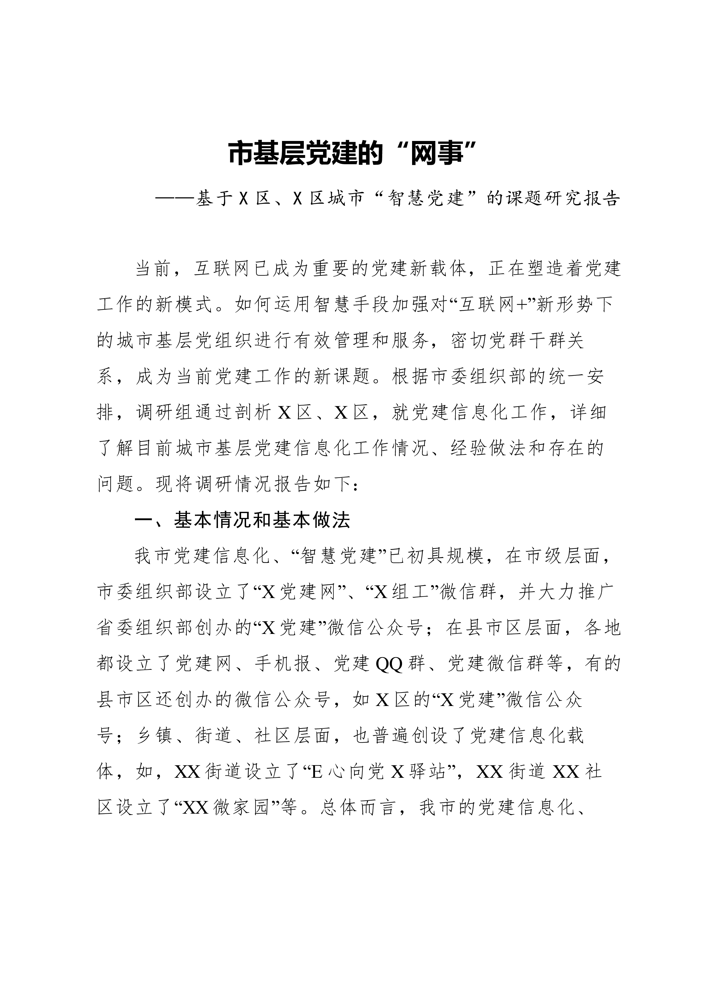 党建工作市基层党建的网事基于X区X区城市智慧党建的课题研究报告工作汇报