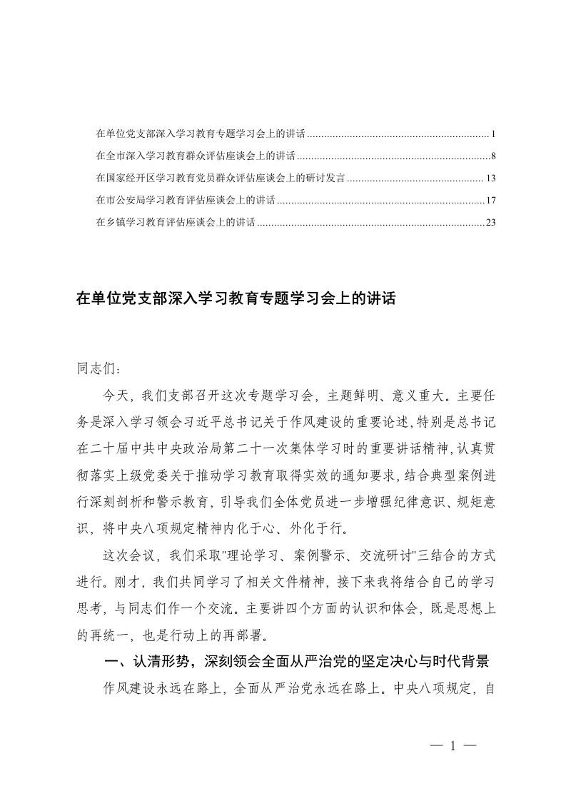 专题学习会上的讲话 (1)党支部,教育,讲话,