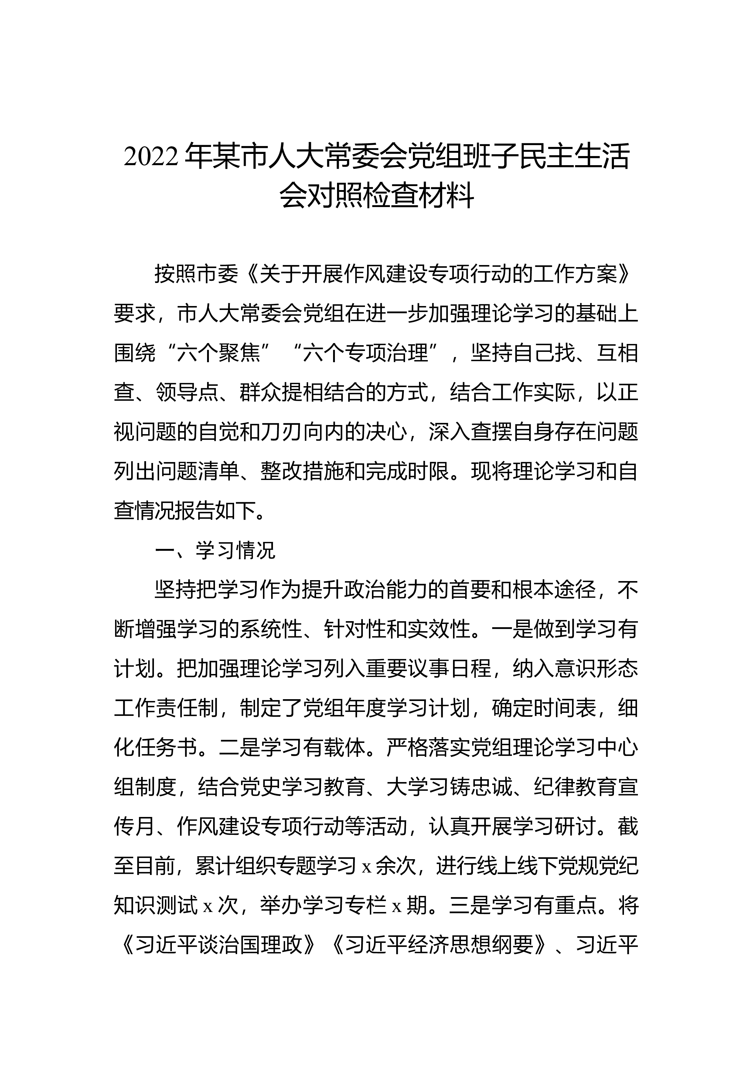 【民主生活会】2022年领导班子民主生活会对照检查材料(六个方面)