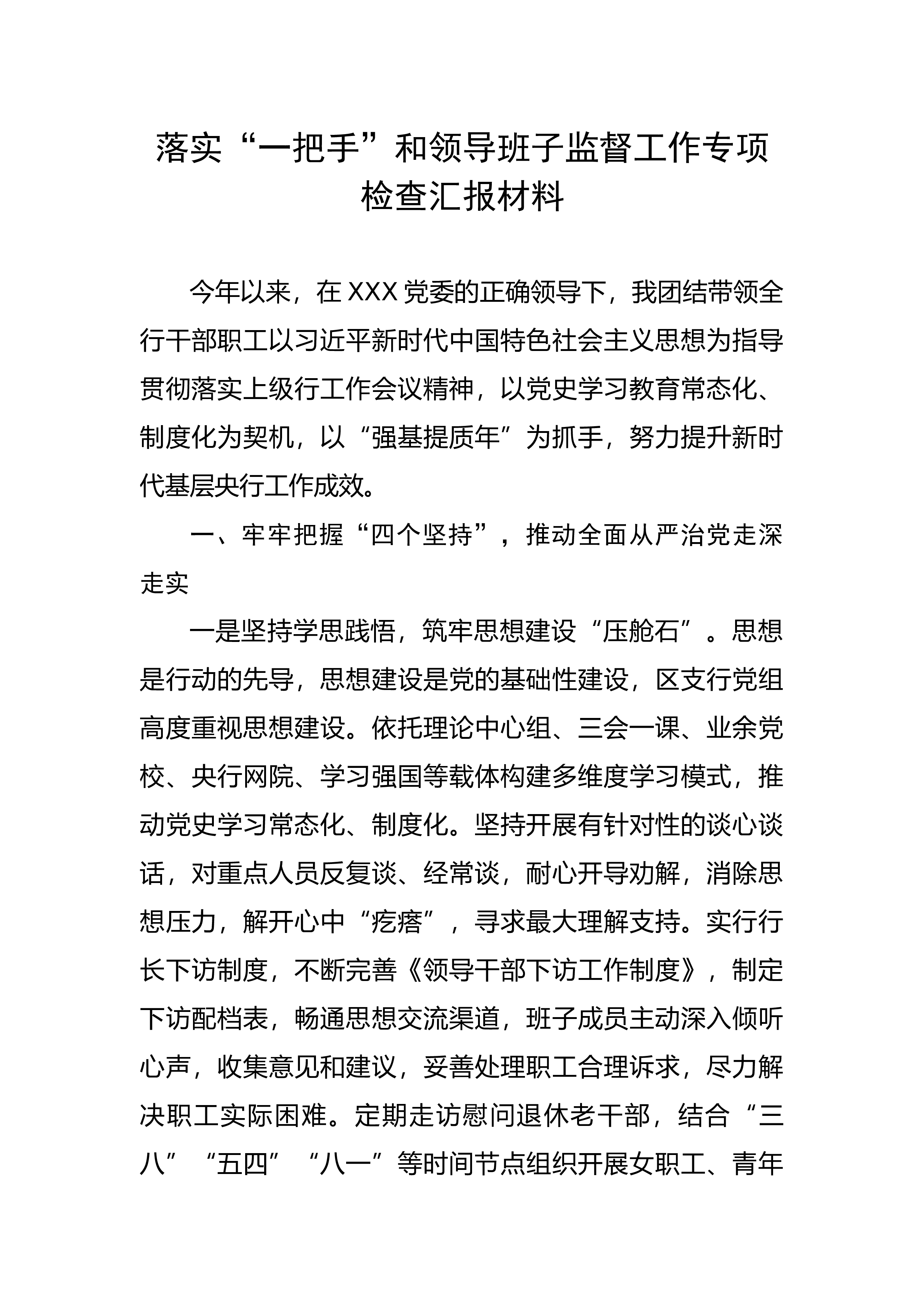 抓党建“一岗双责”履行情况汇报简要汇报两个方面。一、职责履行情况今年以来,自己深入贯彻落实中央和省市县委关于全面从严治党的部署要求,认真履行协助县委主要领导抓党建工作职责,有力推动了各项管党治党措施落到实处。一是强化理论武装,提高站位强担当。始终把理论武装放在首位,在参加县委常委会和县委中心组学习会集体学习的基础上,充分利用“学习强国”等平台加强个人自学,全面系统掌握习近平新时代中国特色社会主义思想和党的建设总要求,进一步树牢“四个意识”,坚定“四个自信”,坚决做到“两个维护”。督促各级各部门建立“不忘初心、牢记使命”制度,深入学习党的二十精神,多方引导党员干部锤炼党性修养,提升能力素质,推动...