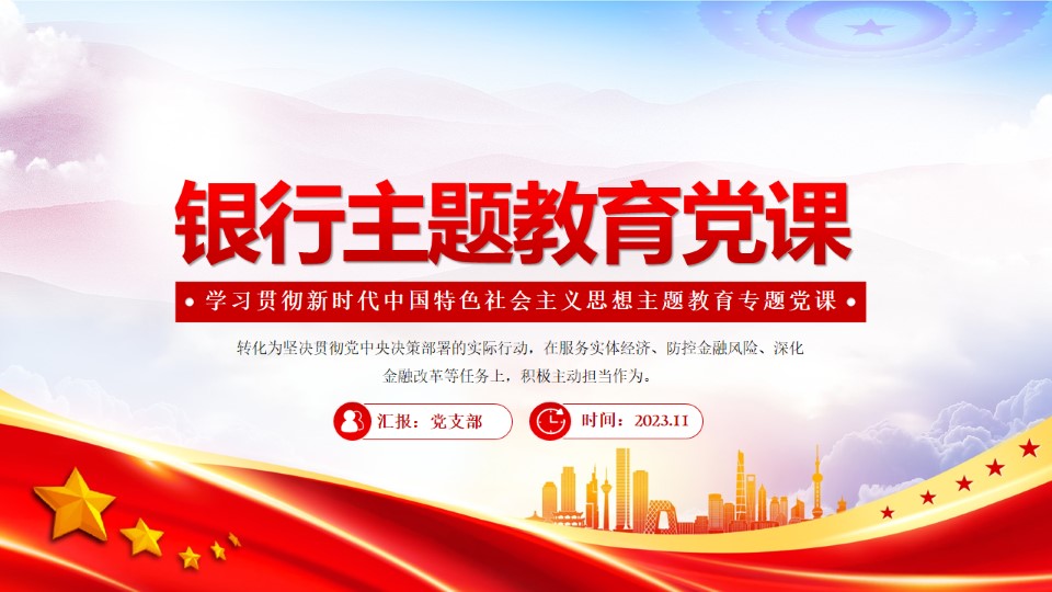 2024微党课银行教育党课ppt模板带内容学习贯彻习近平新时代中国特色社会主义思想教育专题党课ppt课件