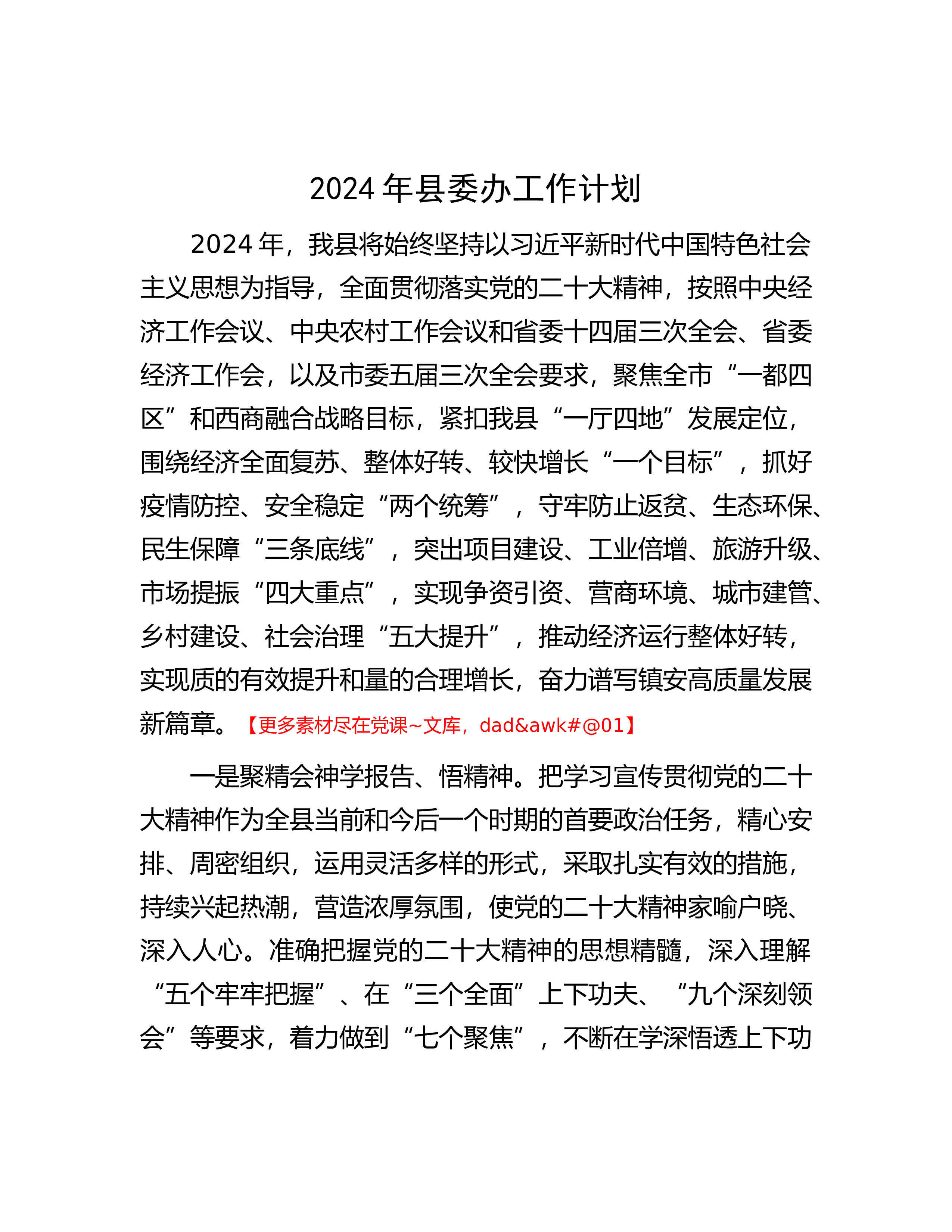 深入贯彻落实二十大精神谱抓党建促乡村振兴新篇(1)(县组织部长)党的二十大报告指出,要坚持大抓基层的鲜明导向,抓党建促乡村振兴。推动乡村振兴,党建引领是关键,x县将深入贯彻落实党的二十大精神,积极探索抓党建促乡村振兴崭新路径,以乡村全面振兴推动县域经济高质量发展。一、固本培元,筑牢乡村组织振兴之基乡村要振兴,必须强化组织振兴这一根本和保障。x部长强调,要充分发挥党建引领作用。把党建与疫情防控、乡村振兴、社会治理等紧密结合,让党旗在一线高高飘扬贯彻落实这一要求,要不断提升基层党组织凝聚力、战斗力,持续深化基层党组织建设。一是抓支部,实施好“桥头堡”锻造工程。以党建引领“三区一带”(文旅康养产业振...
