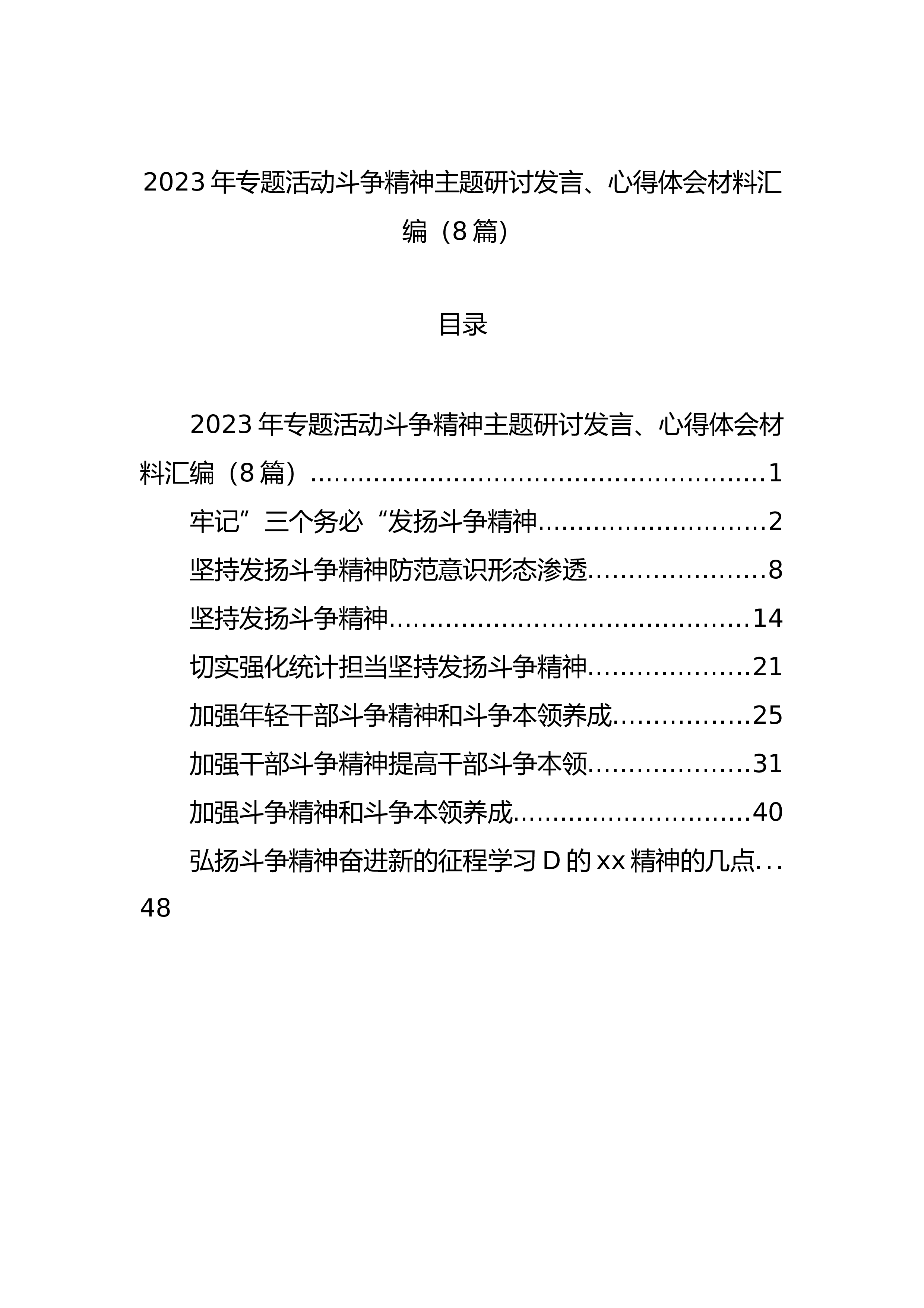 2023年专题活动斗争精神主题研讨发言、心得体会材料汇编(8篇)