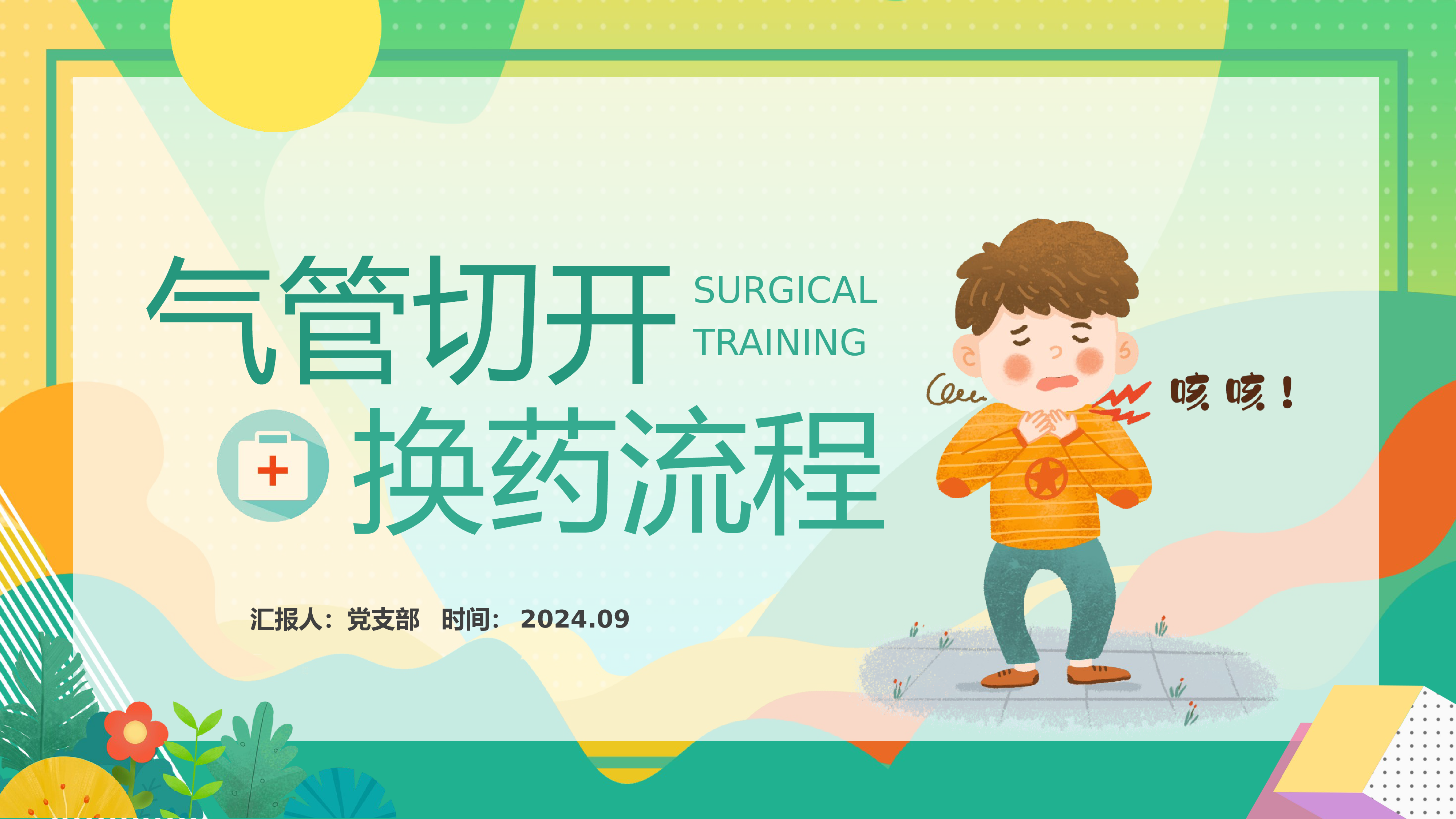 2024微党课2023气管切开换药流程PPT清新插画风医院气管切开换药流程培训课件模板下载