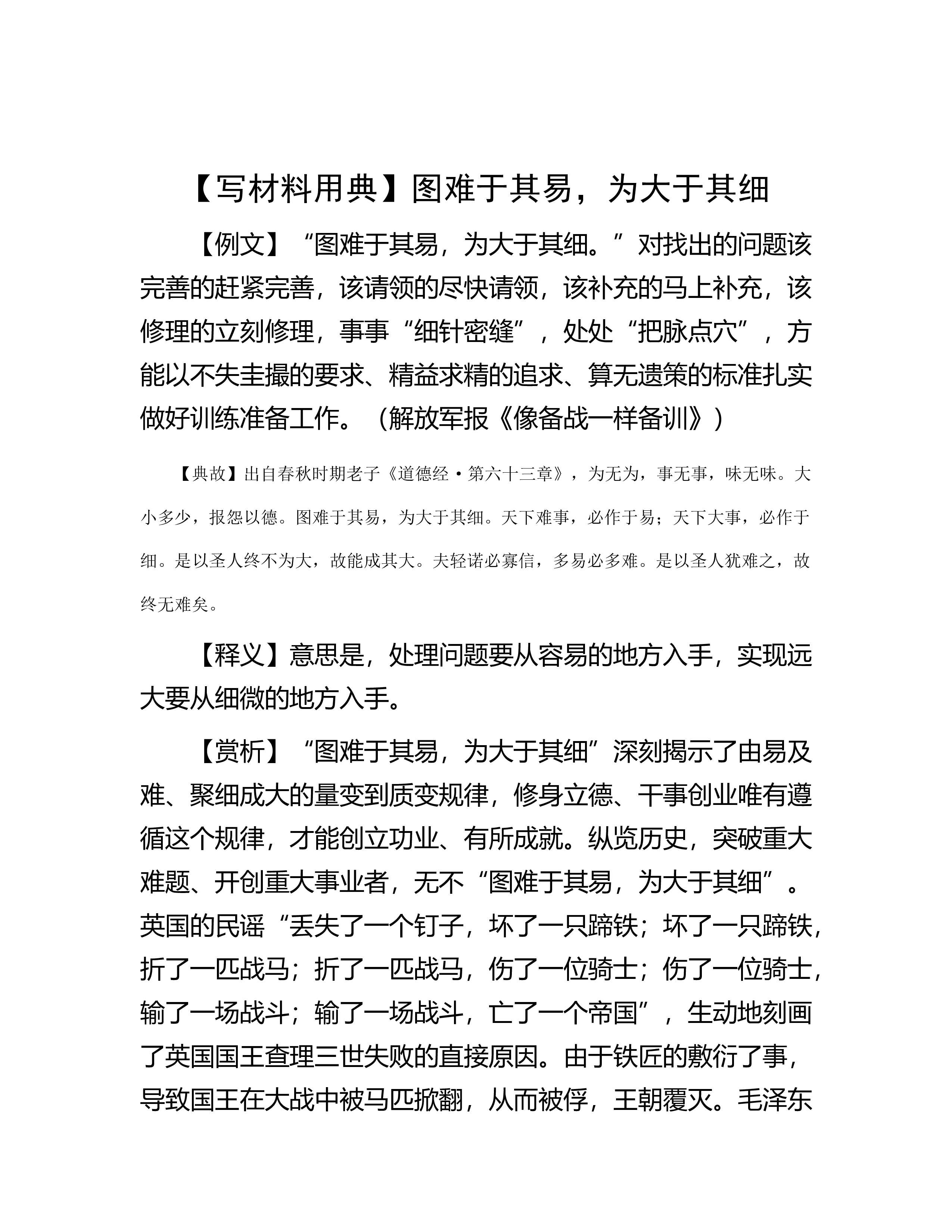 【写材料用典】所藏乎身不恕,而能喻诸人者,未之有也【例文】“所藏乎身不恕,而能喻诸人者,未之有也。”恕道是一种修养,能够在人与人之间产生相互影响。在现实工作和生活中,我们在应对、处理各种关系和矛盾时,都应该保持一种视人如己、宽恕待人的博大胸怀和气度。如此,方能修炼仁德,人生之路也会更加宽广和顺畅。(中国纪检监察报《强恕近仁》)【典故】出自《礼记·大学》,君子有诸己而后求人,无诸己而后非诸人。所藏乎身不恕,而能喻诸人者,未之有也。【释义】意思是,品德高尚的人,总是自己先做到,然后才要求别人做到;自己先不这样做,然后才要求别人不这样做。不采取这种推己及人的恕道,而想让别人按自己的意思去做,那是不可...