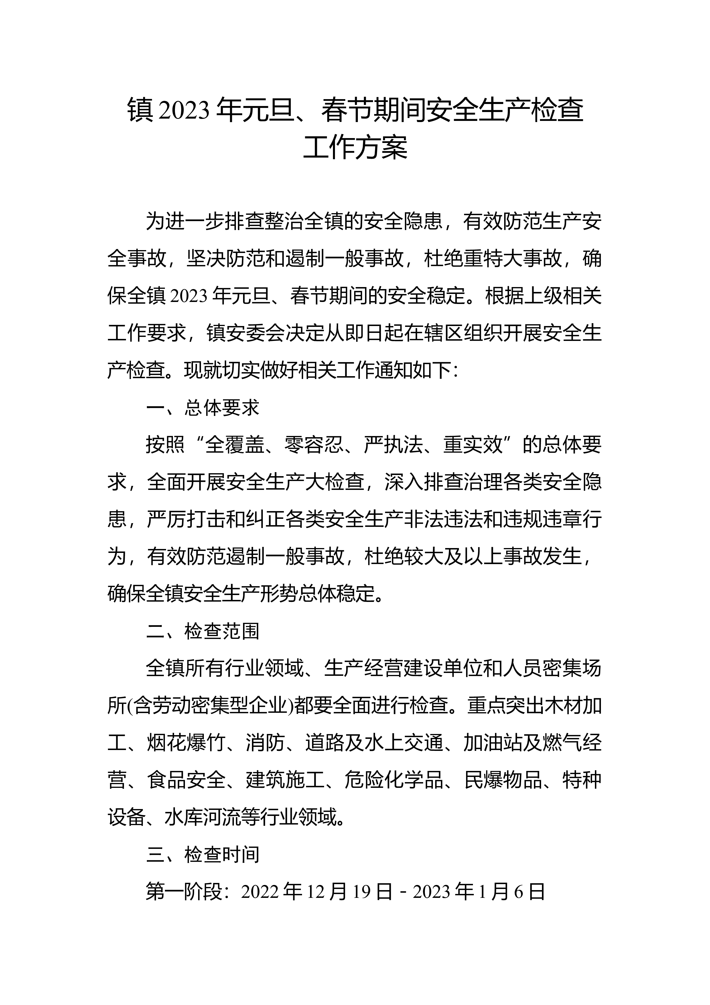 【安全生产】镇2023年元旦、春节期间安全生产检查工作方案