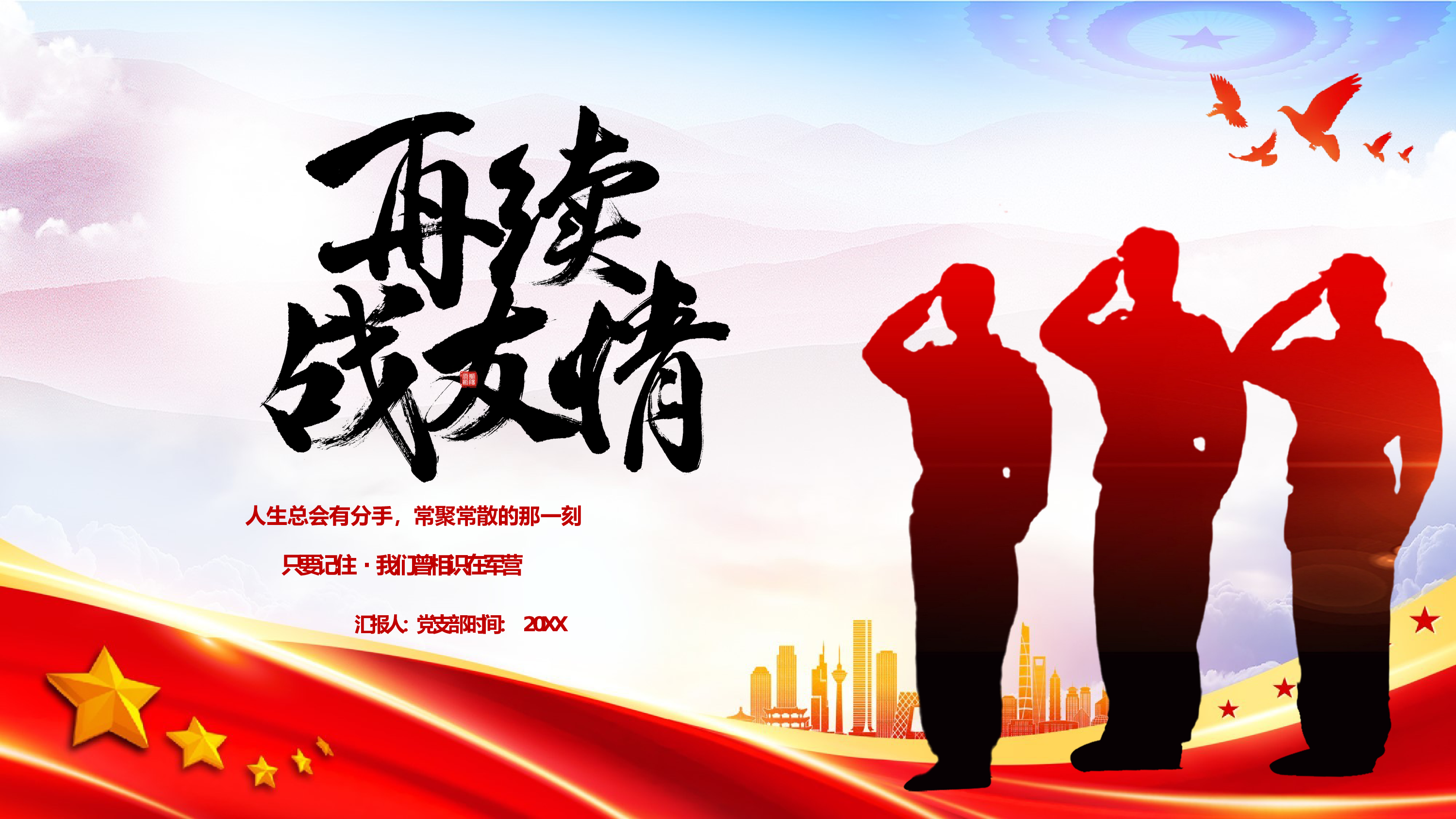 退伍兵老兵欢送仪式ppt模板(带内容)党支部党课ppt模板下载