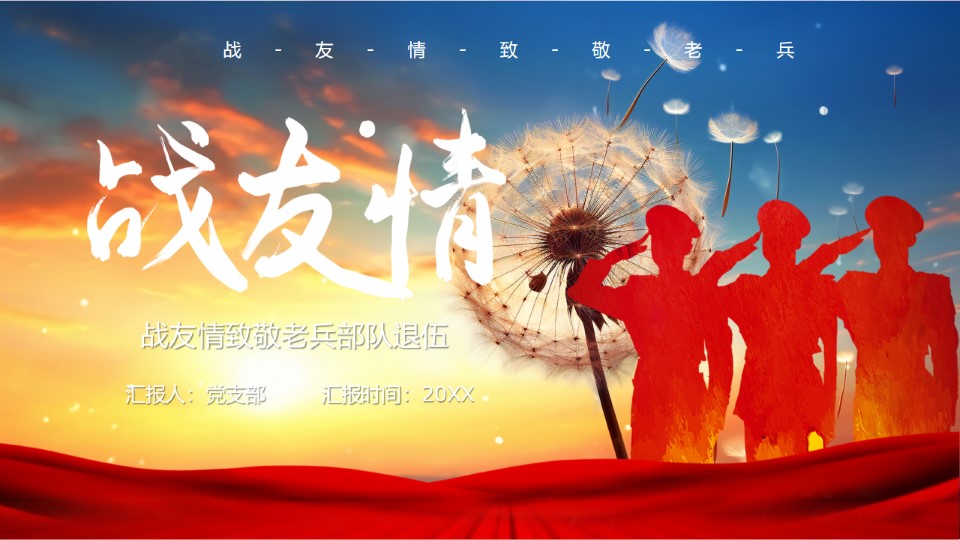 退伍兵老兵欢送仪式ppt模板(带内容)党支部党课ppt模板下载党课ppt,党课ppt模板