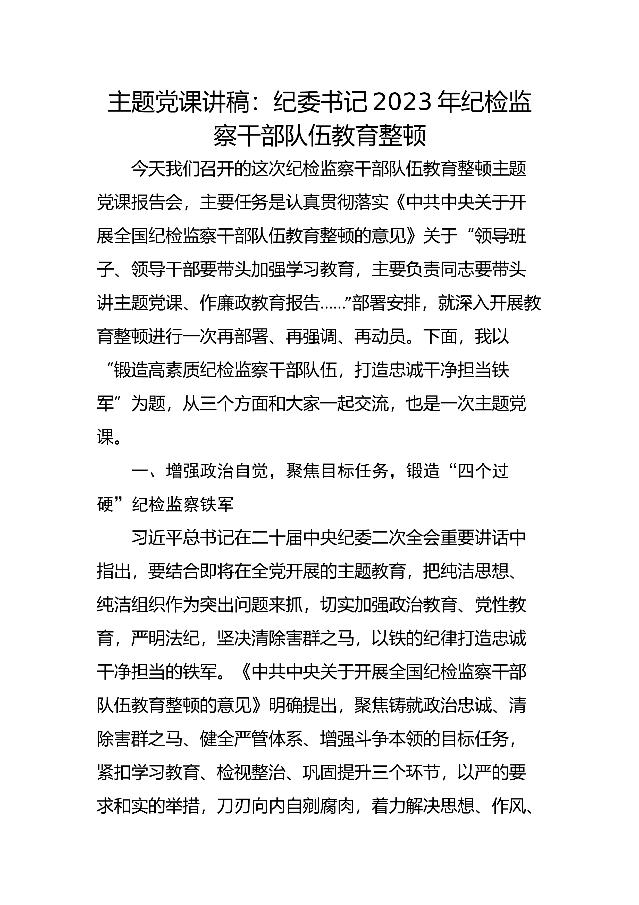 【国资国企】某国企纪检监察系统关于开展纪检监察干部队伍教育整顿工作实施方案