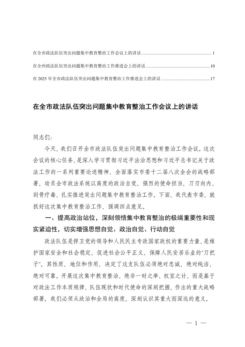 突出问题集中教育整治工作推进会上的讲话教育,工作,讲话,