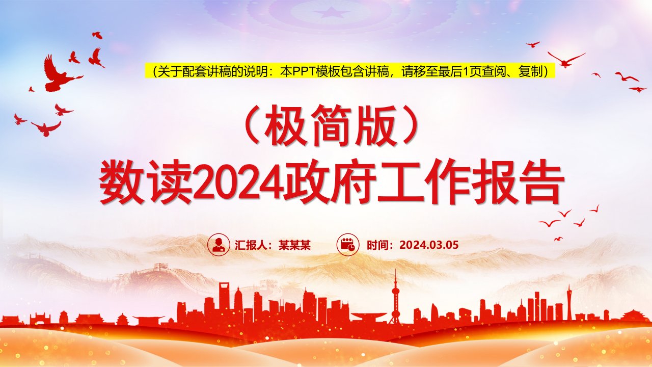 精美党政风数读2024政府工作报告(极简版)党课ppt模板(含配套讲稿)党支部团支部党员干部学习党课课件PPT党课课件