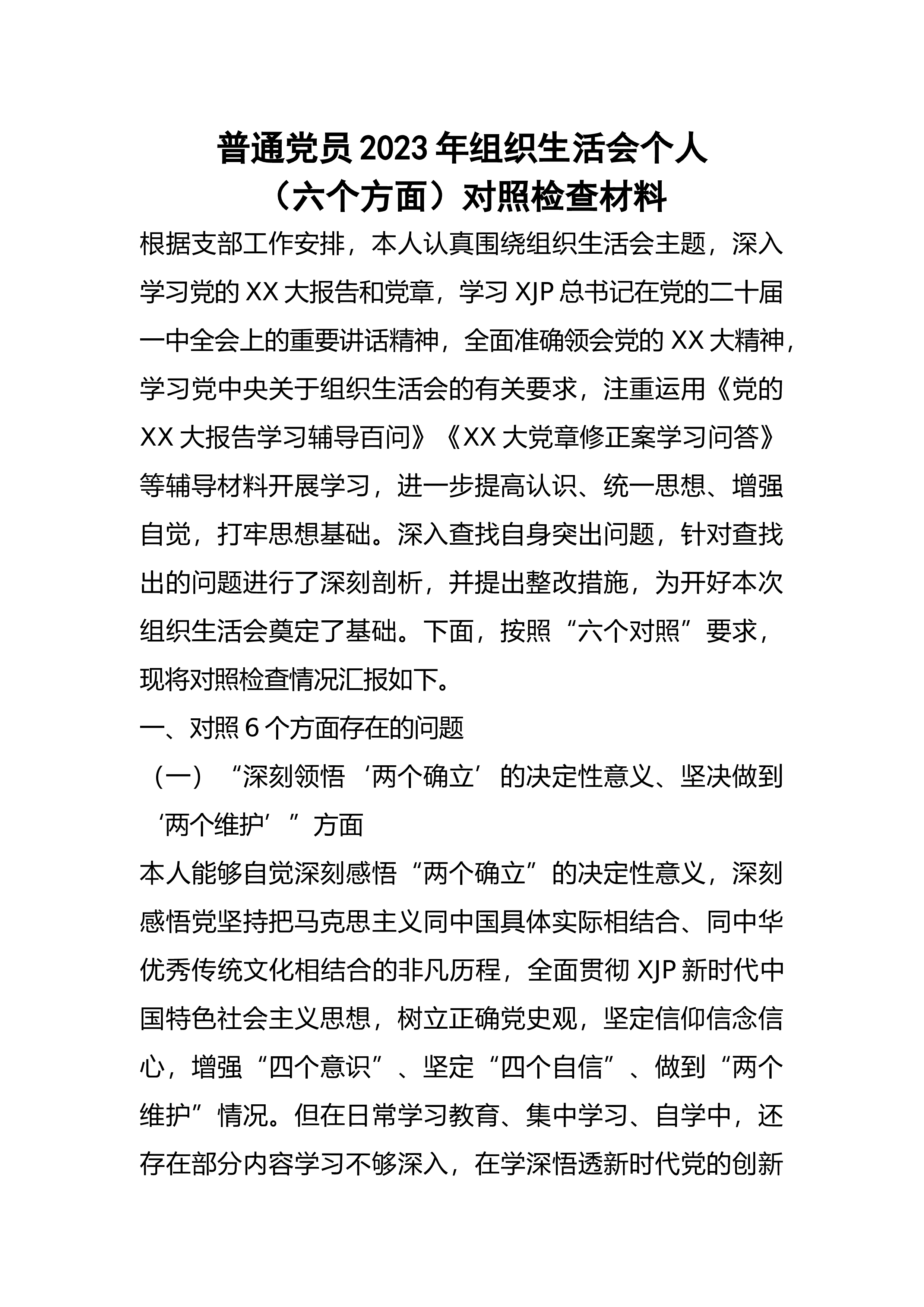 农业农村局党支部班子2022年度七个方面组织生活会对照检查材料形式主义官僚主义方面按照区直机关工委关于认真组织召开2022年度基层党组织组织生活会和民主评议党员工作的相关要求,会前,支部通过集中学习形式,深入学习了党的二十大报告和党章,学习了习近平总书记重要讲话精神,学习了省第XX次党代会以及省委XX届X次全会精神,学习了市委第X次党代会和区委第X次党代会精神。根据组织生活会有关要求,并聚焦本次组织生活会主题,对照党的二十大精神和党章党纪党规,对照“七个方面”,深入查找支委班子存在的突出问题,深刻剖析根源,制定整改措施,明确努力方向现将支委班子对照检查情况汇报如下。一、支部2022年度工作开展...