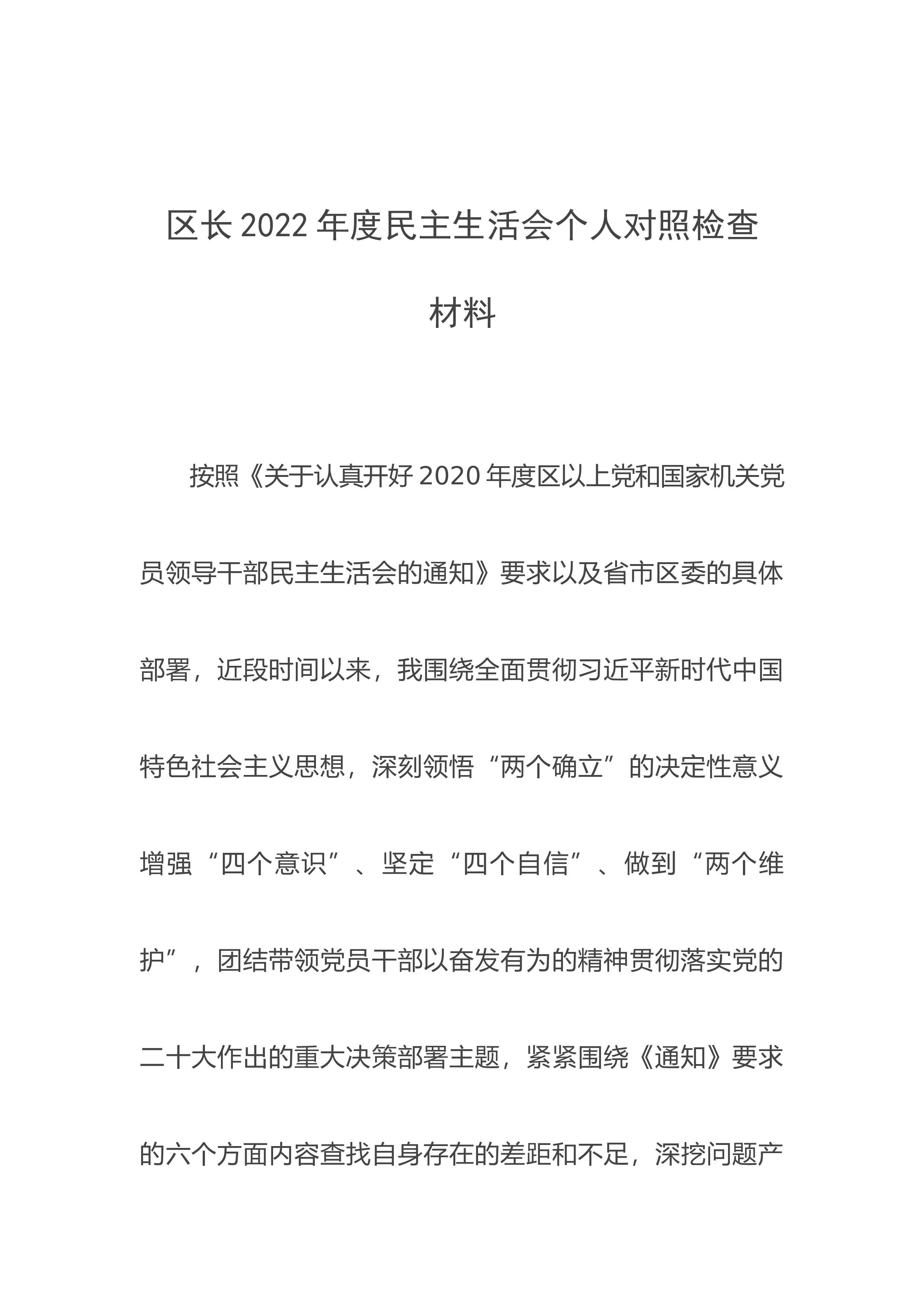 某县医院科室主任党员干部个人对照检查材料按照医院通知要求,近期我认真读原著、学原文、悟原理,深刻领会习近平新时代中国特色社会主义思想的历史地位和丰富内涵,结合自身思想工作实际,重点查找存在的突出问题并深刻剖析了问题产生的原因。通过问题查摆,进一步明确了努力方向,制定了整改措施。下面作个人剖析。一、检视剖析的问题(一)在深刻领悟“两个确立”的决定性意义、坚决做到“两个维护”方面。作为县医院放射科的主任,能够自觉拥护“两个确立”、坚决做到“两个维护”,工作中够积极参加医院组织各类党建教育活动,不断提升个人医生职业道德和职业素养。但对照更高标准,还存在一些不足:一是理解不深。从“两个维护”的高度来审...