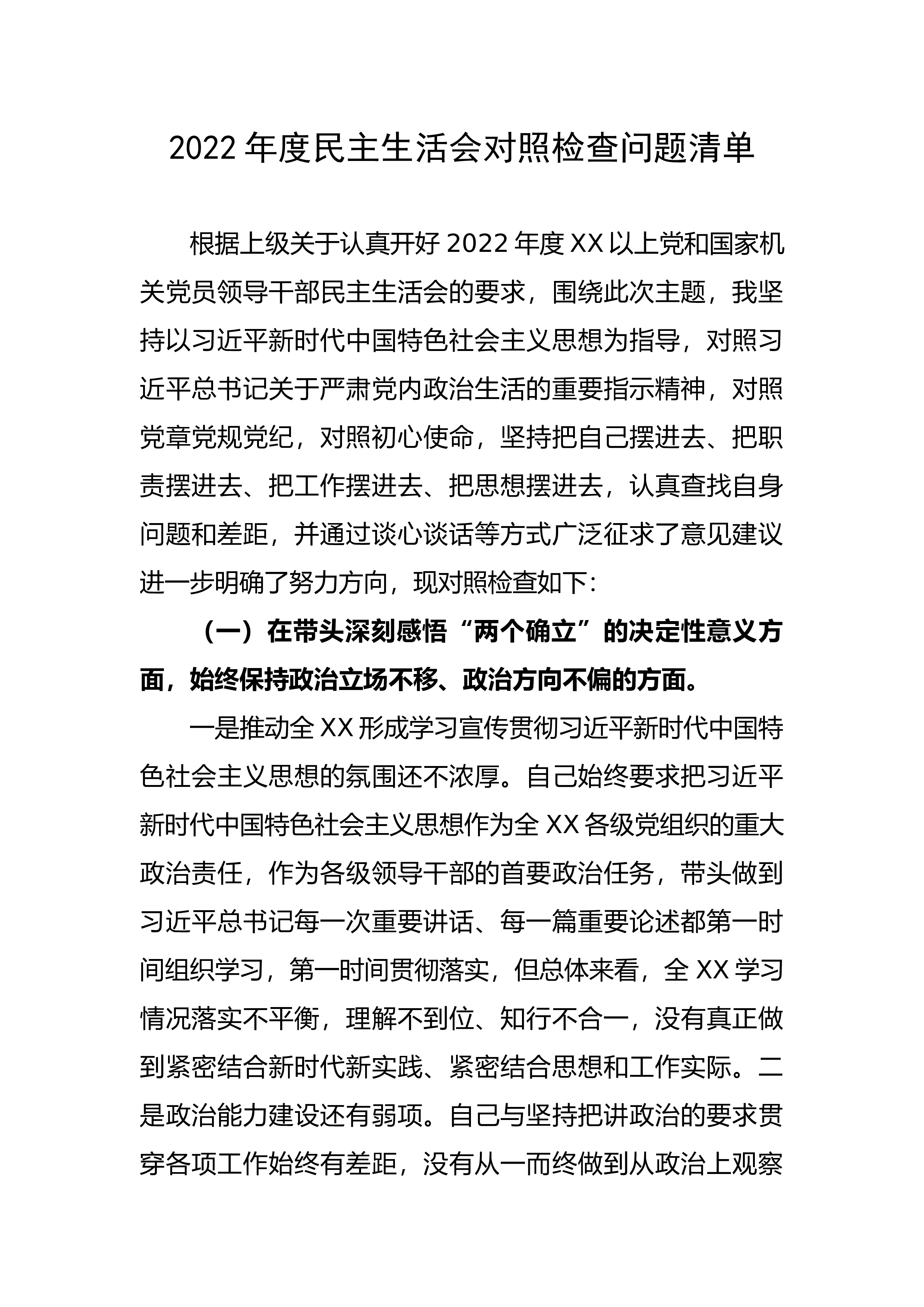 【民主生活会】领导干部2022年民主生活会对照检查材料