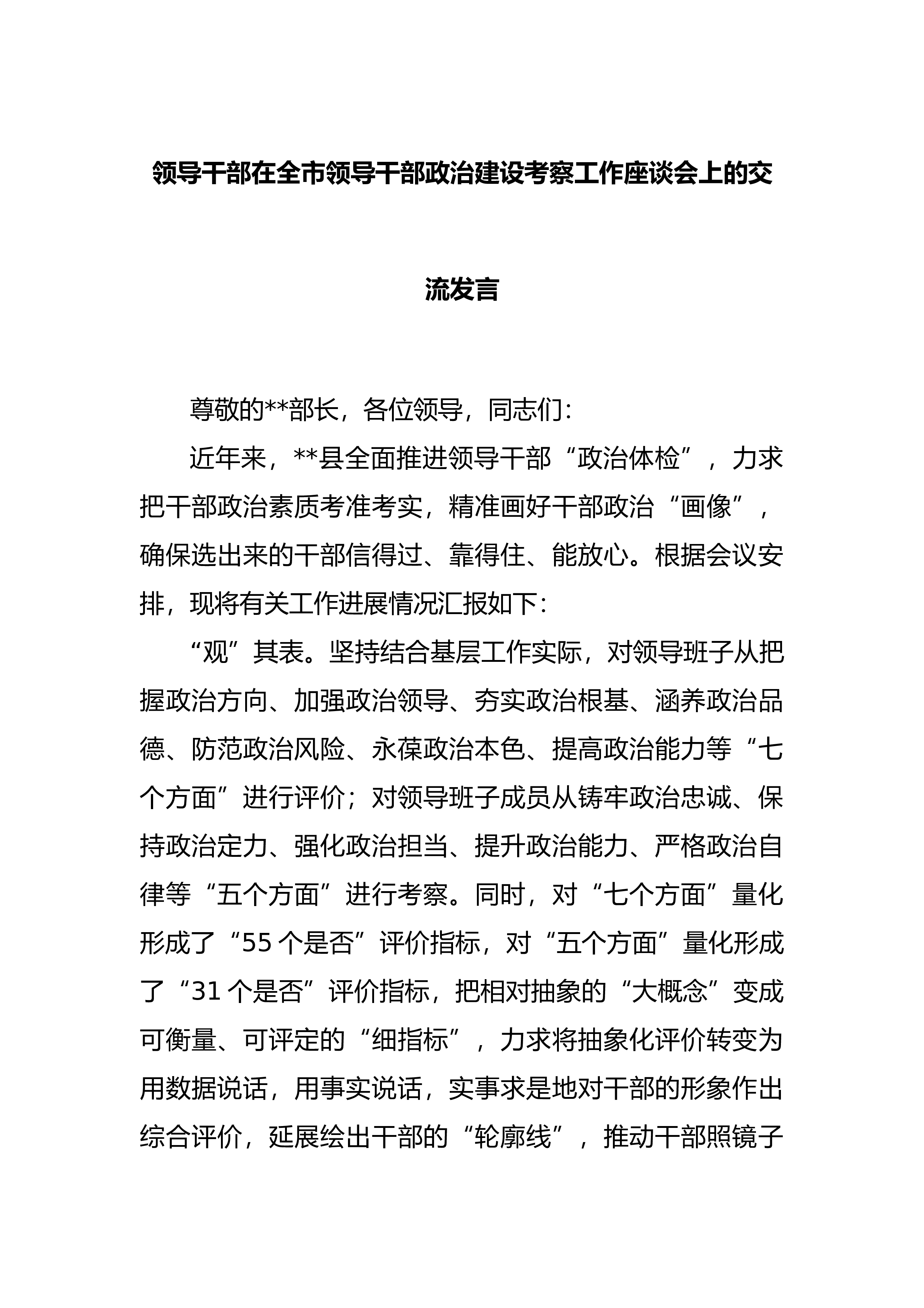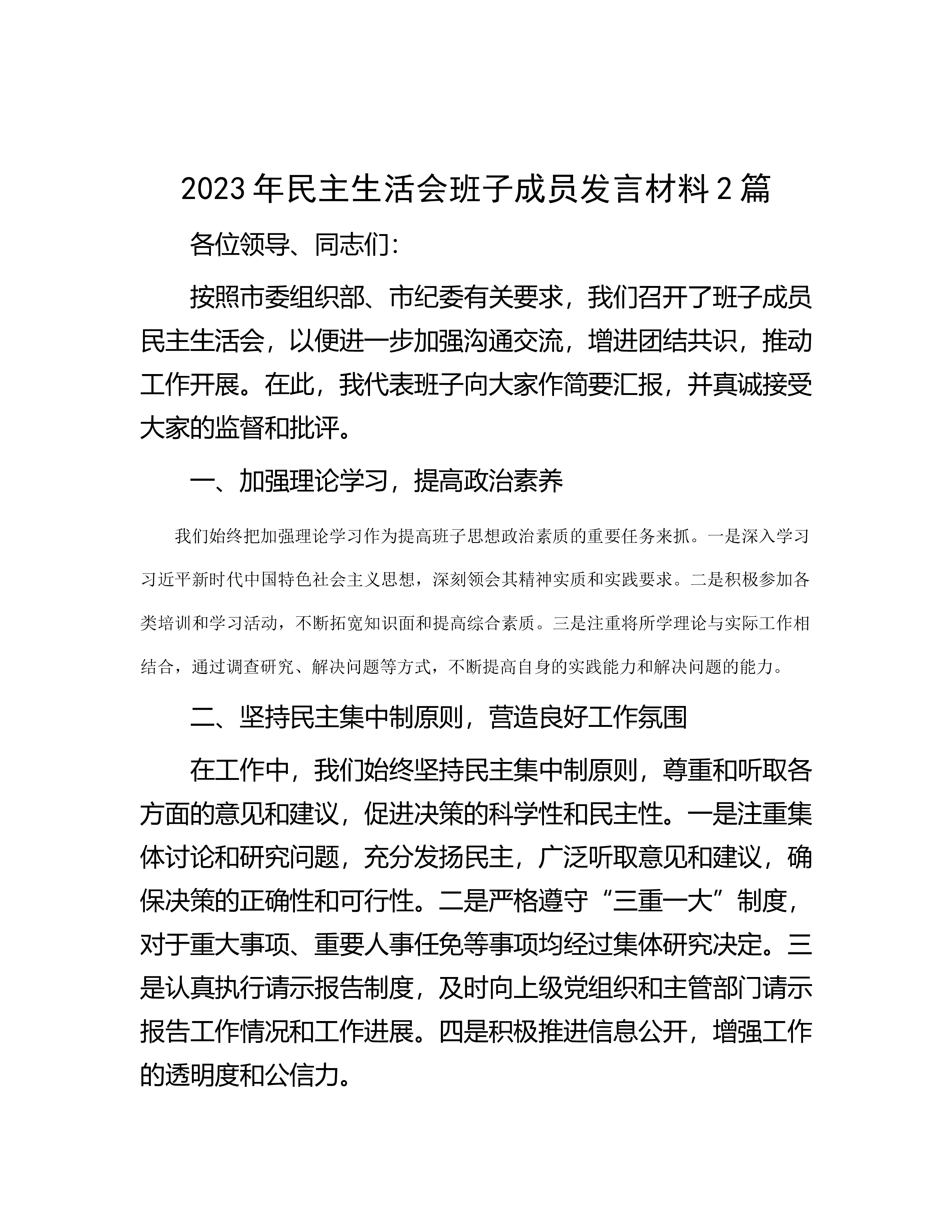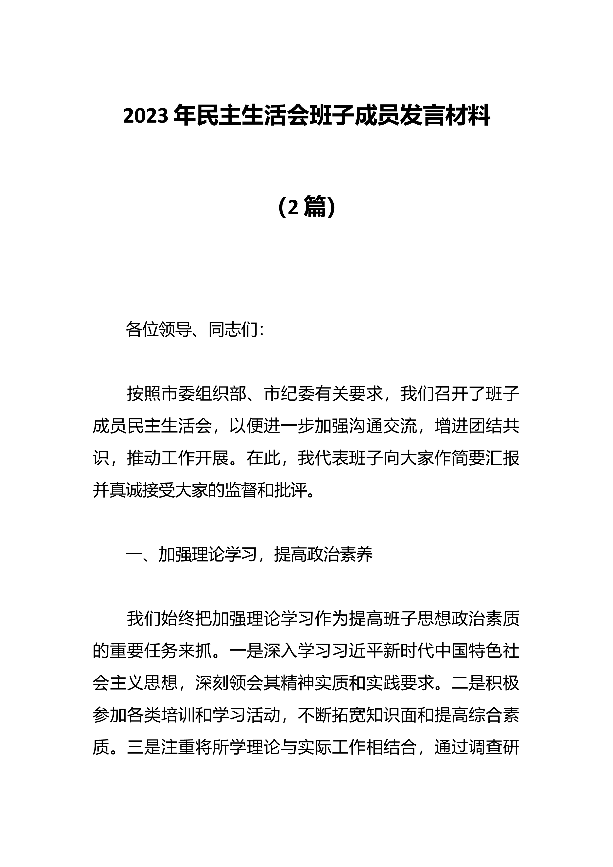 县政府办公室交流发言材料近年来,县政府办公室按照“政治素质好、团结协调好、用人导向好、作风形象好的要求,以建设“学习型、创新型、服务型”领导班子为目标,突出重点,强化措施,创新方法,机关党建工作成效明显,班子整体作用发挥充分,连续多年被区政府评定为“优秀班子”,2022年被表彰为全市“应急管理工作先进单位”、“政务信息工作先进单位”,被区直机关工委表彰为“先进基层党组织”、命名为“创先争优活动示范点”,2023年被区政府命名为“全区基层党建示范点”。一、抓学习促能力,政治理论水平进一步提高认真安排、周密部署,深入开展学习贯彻习近平新时代中国特色社会主义主T教育,着力加强领导班子的思想政治建设,...