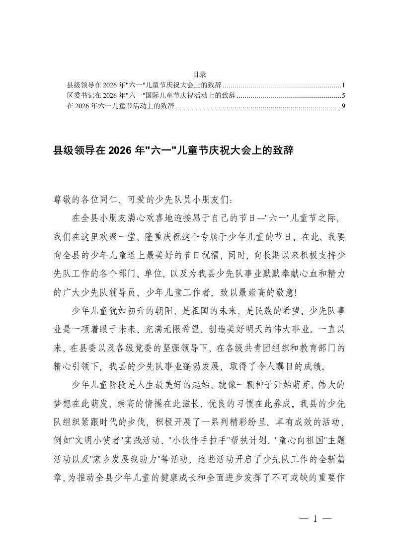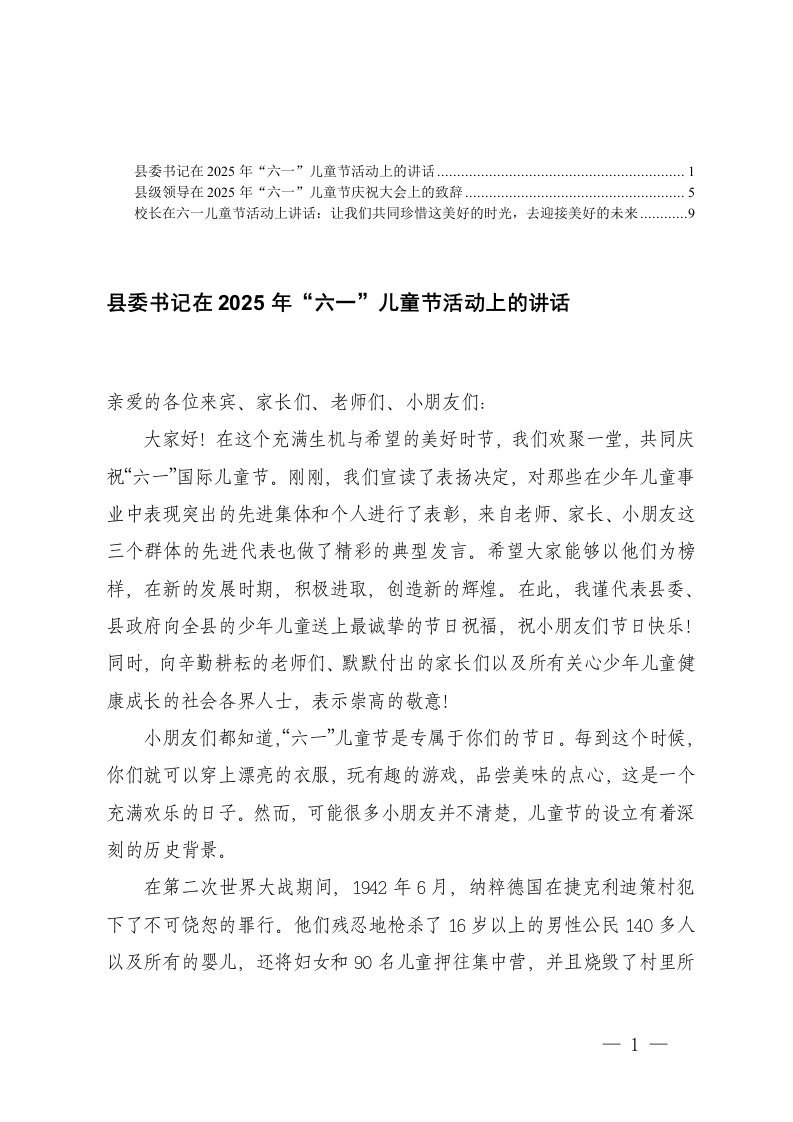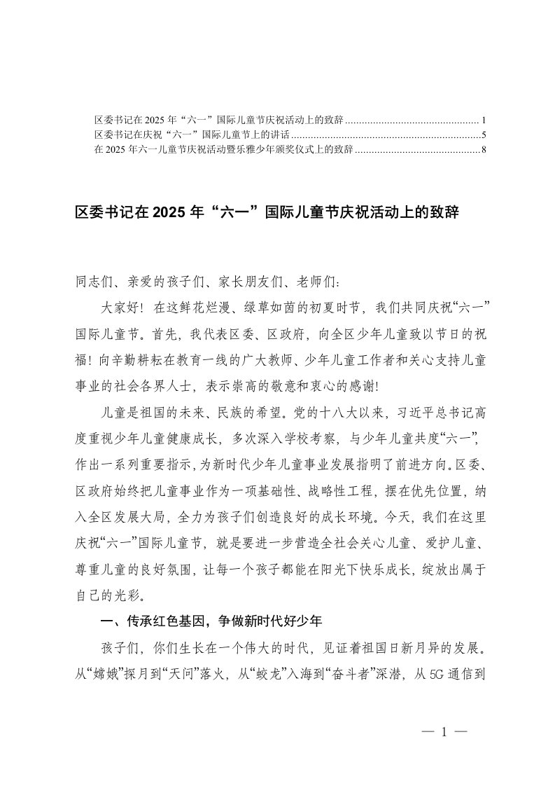 ,区委书记,儿童,六一国际儿童节县级领导区委书记在2025年六一国际儿童节庆祝活动上的