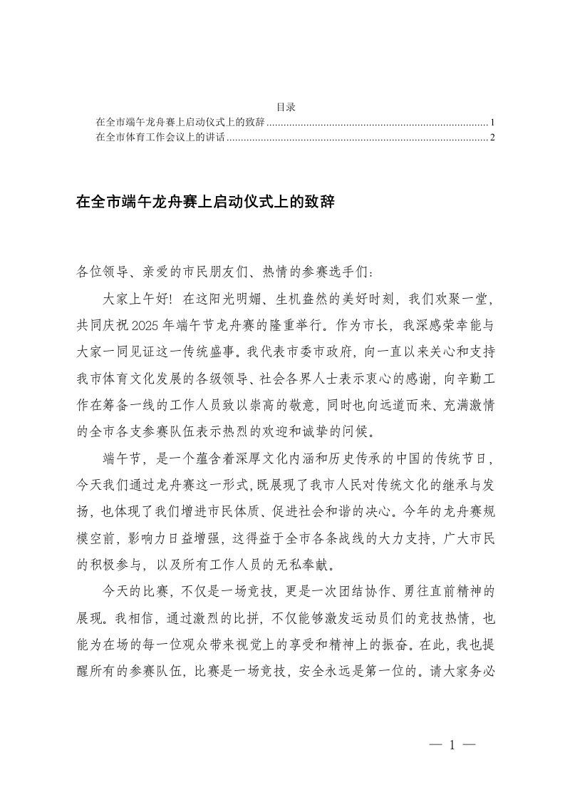 ,工作,讲话,工作会议在全市端午龙舟赛上启动仪式上的