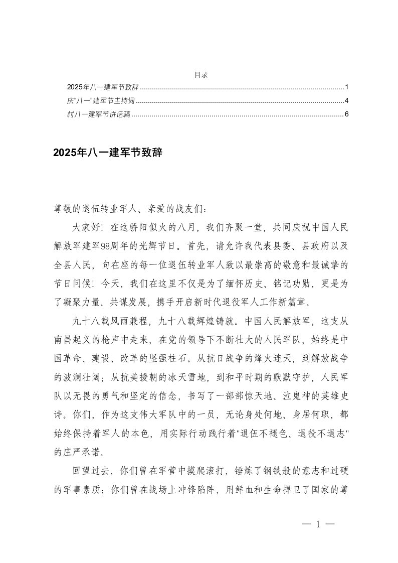 ,主持词,讲话,八一,支部书记2025年村支部书记八一建军节讲话稿八一建军节主持词建军节