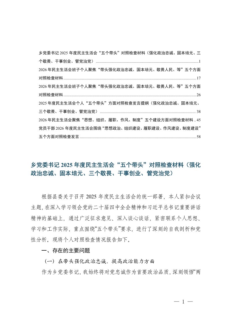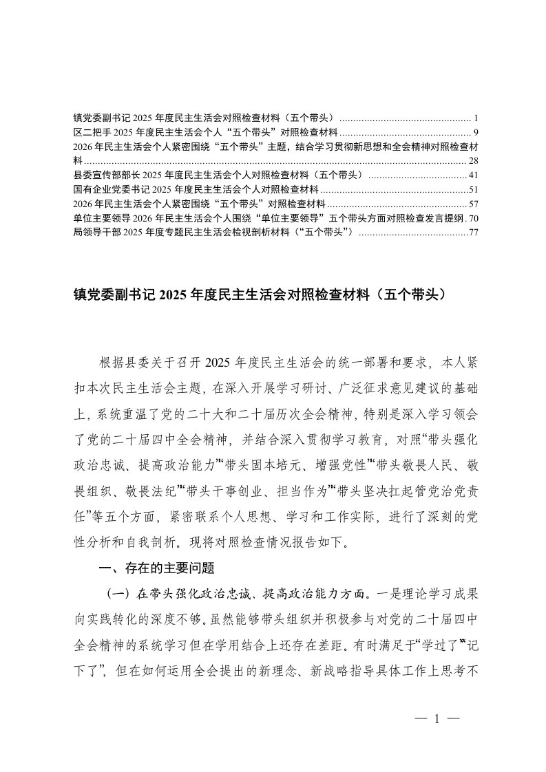 国企领导班子机关单位领导班子领导干部2025年度在带头强化政治忠诚提高政治能力在带头固本培元增强党性在带头敬畏人民敬畏组织敬畏法纪在带头干事创业担当作为在带头坚决扛起管党治党责任