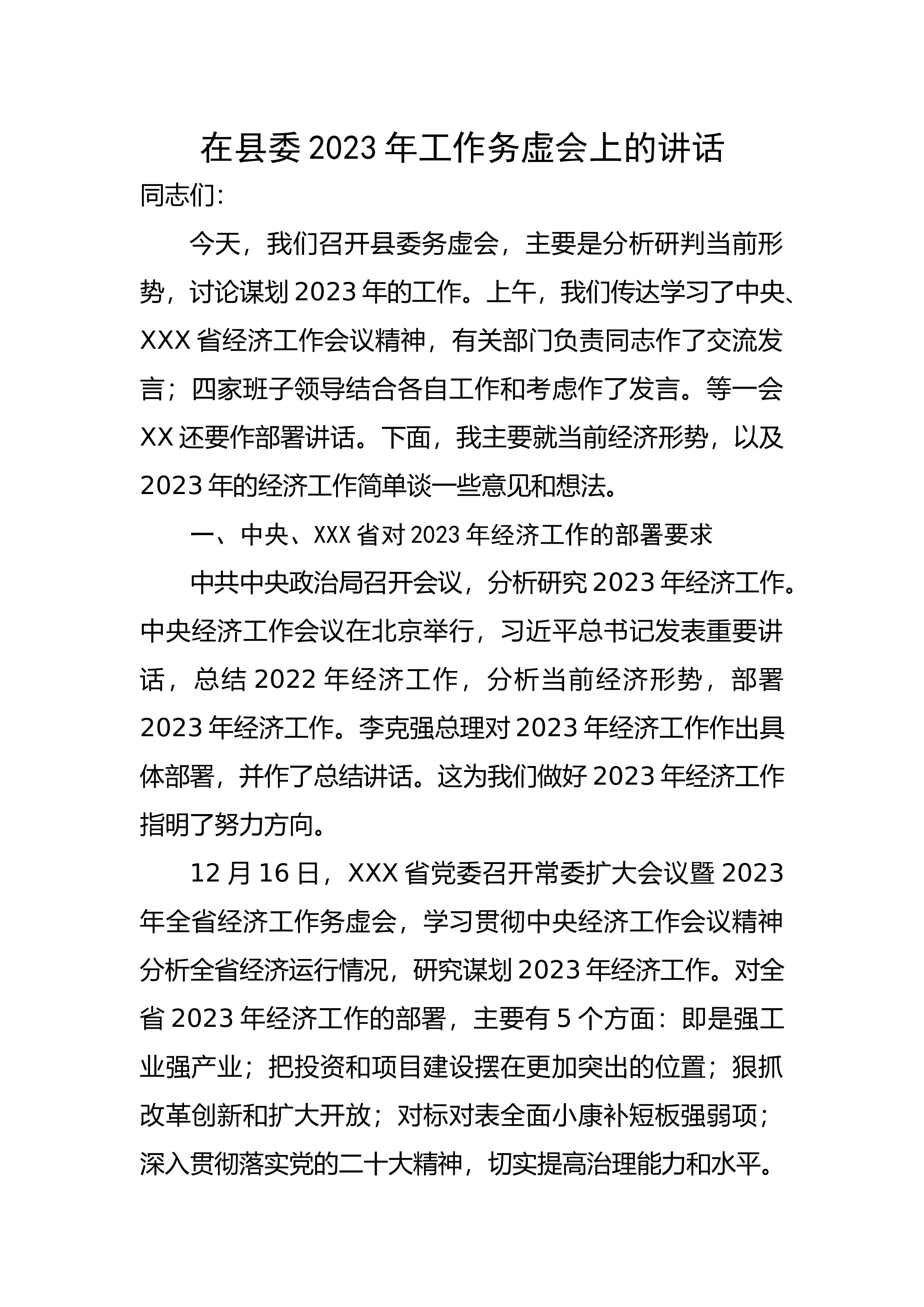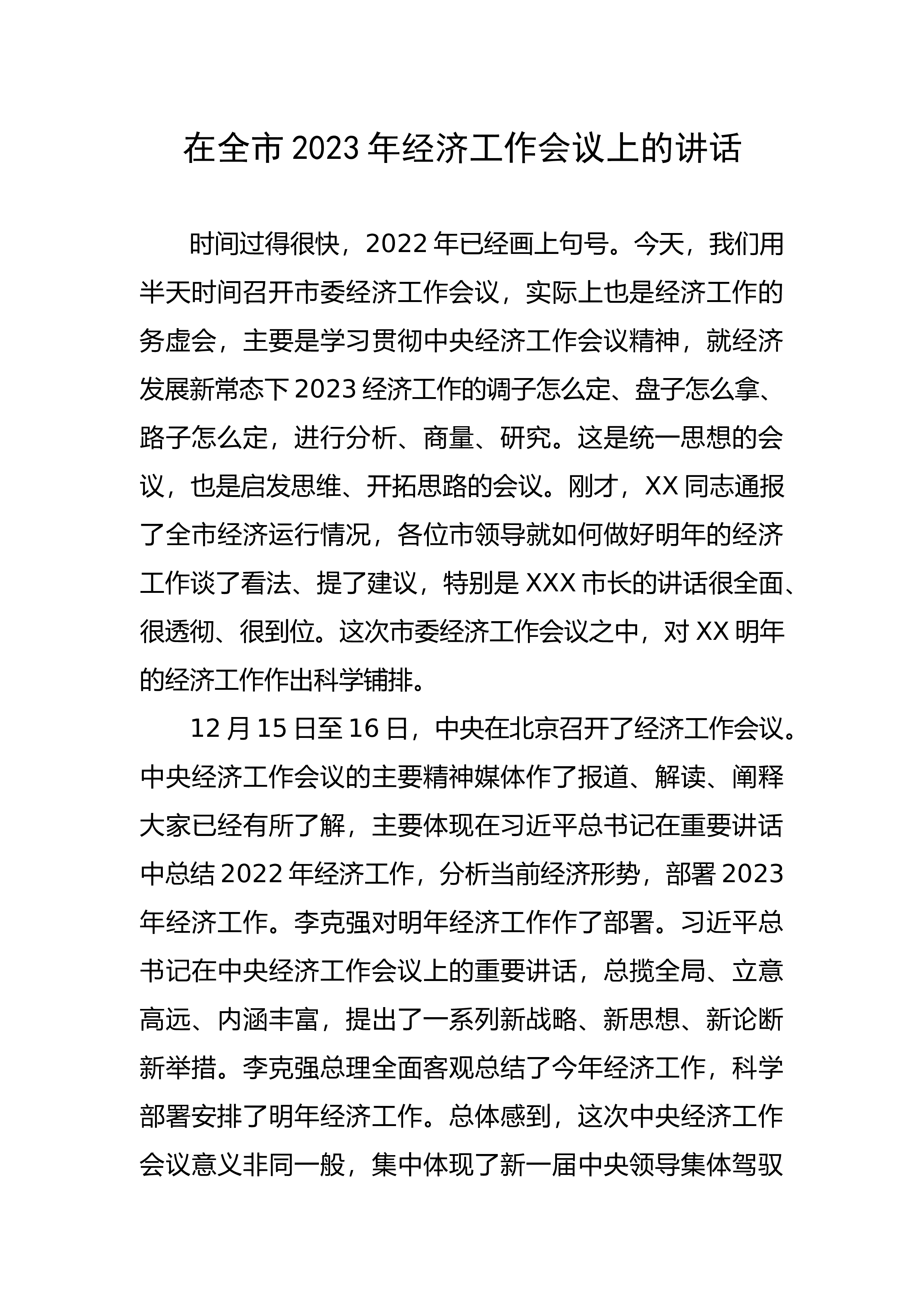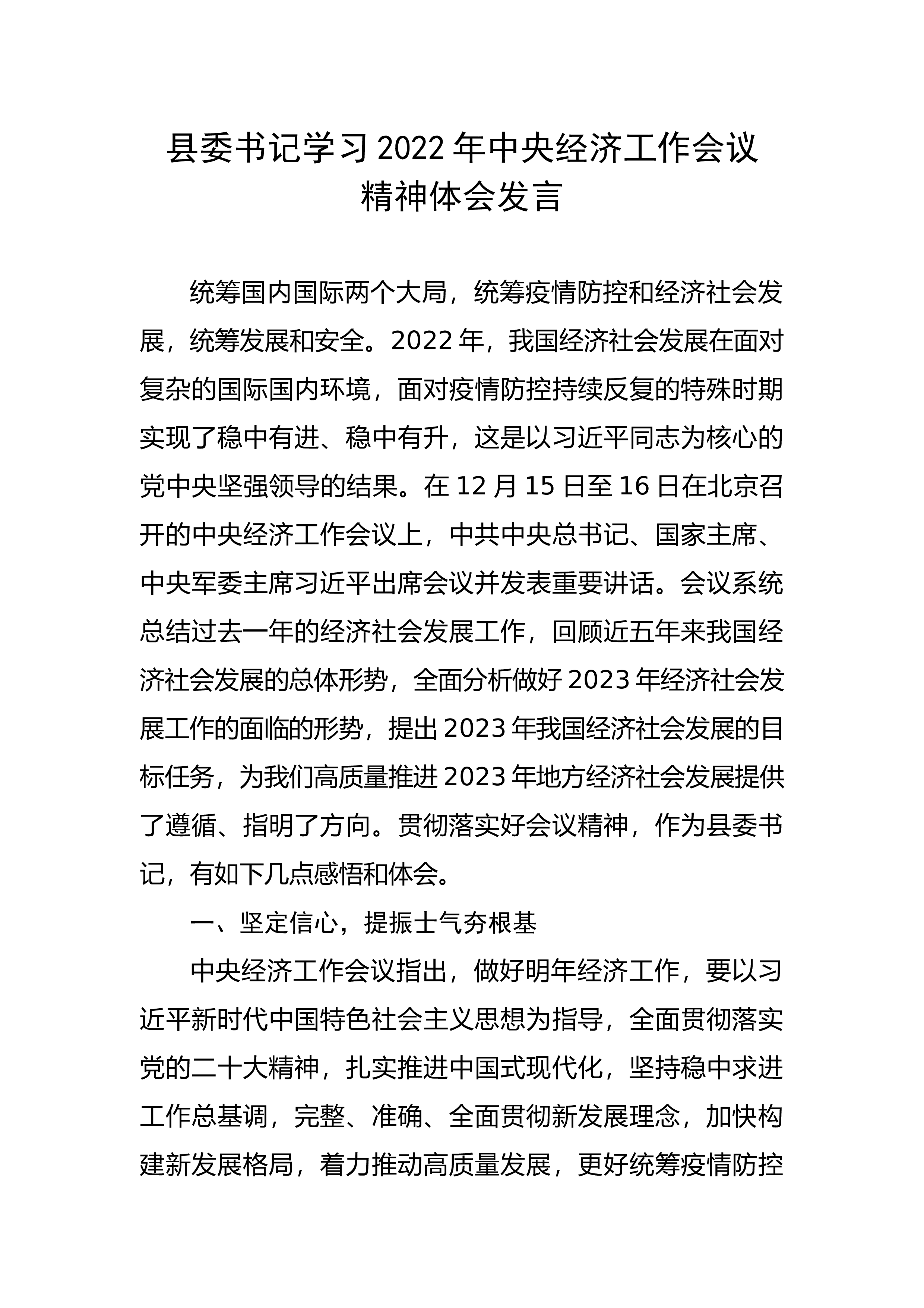 在传达2022年中央经济工作会议上的发言同志们:中央经济工作会议12月15日至16日在北京举行。这次会议是党的二十大之后党中央召开的一次十分重要的会议,对做好明年经济工作具有重要指导意义。习近平总书记的重要讲话,审时度势、高瞻远瞩、视野宏阔、思想深邃,具有很强的思想性、战略性、前瞻性和指导性,为做好明年和今后一个时期的经济工作提供了根本遵循,是习近平经济思想的又一纲领性文献。会议分析总结了今年经济形势和新时代10年的伟大变革,明确了明年经济工作的总体要求和政策取向,强调要坚持系统观念、守正创新重申“六个坚持”的基本原则,优化五大政策组合,明确做好“六个统筹”、抓好五个方面重点工作,为加快构建新...