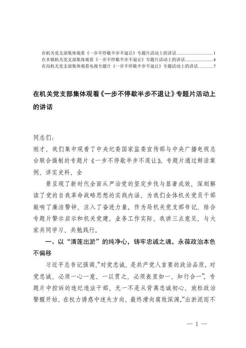3篇2026年在机关党支部集体观看一步不停歇半步不退让