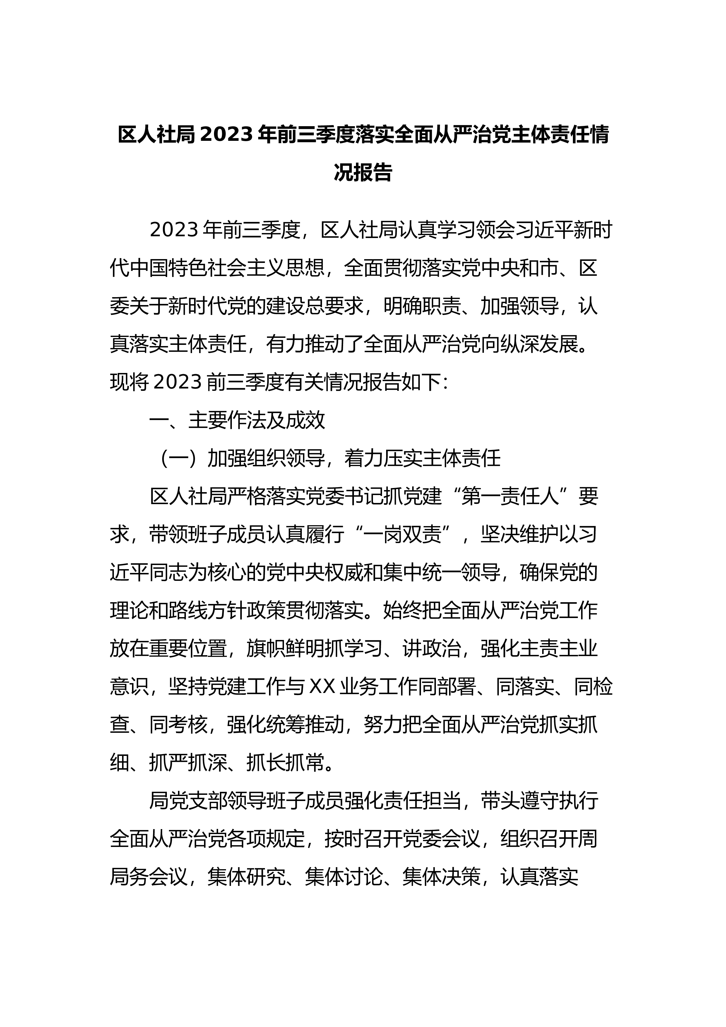 区委领导班子2023年度履行全面从严治党主体责任情况报告2023年以来,在市委的坚强领导下,区委高举习近平新时代中国特色社会主义思想伟大旗帜,深入学习宣传贯彻党的二十大精神,深入开展主T教育,认真落实全市推进全面从严治党向纵深发展工作部署会议精神,牢牢把握全面从严的工作总基调,全面实施推动高质量发展“十项行动”,围绕“一海一城、两区两带”发展格局,走好“生态立区、制造强区、乡村兴区、惠民福区”发展路径,打好打赢“六大行动”“六大攻坚战”等重点任务,坚持把党的政治建设摆在首位,坚定不移加强党的全面领导,全面推进党的自我净化、自我完善、自我革新、自我提高,为全区经济社会实现绿色高质量发展提供坚强政...