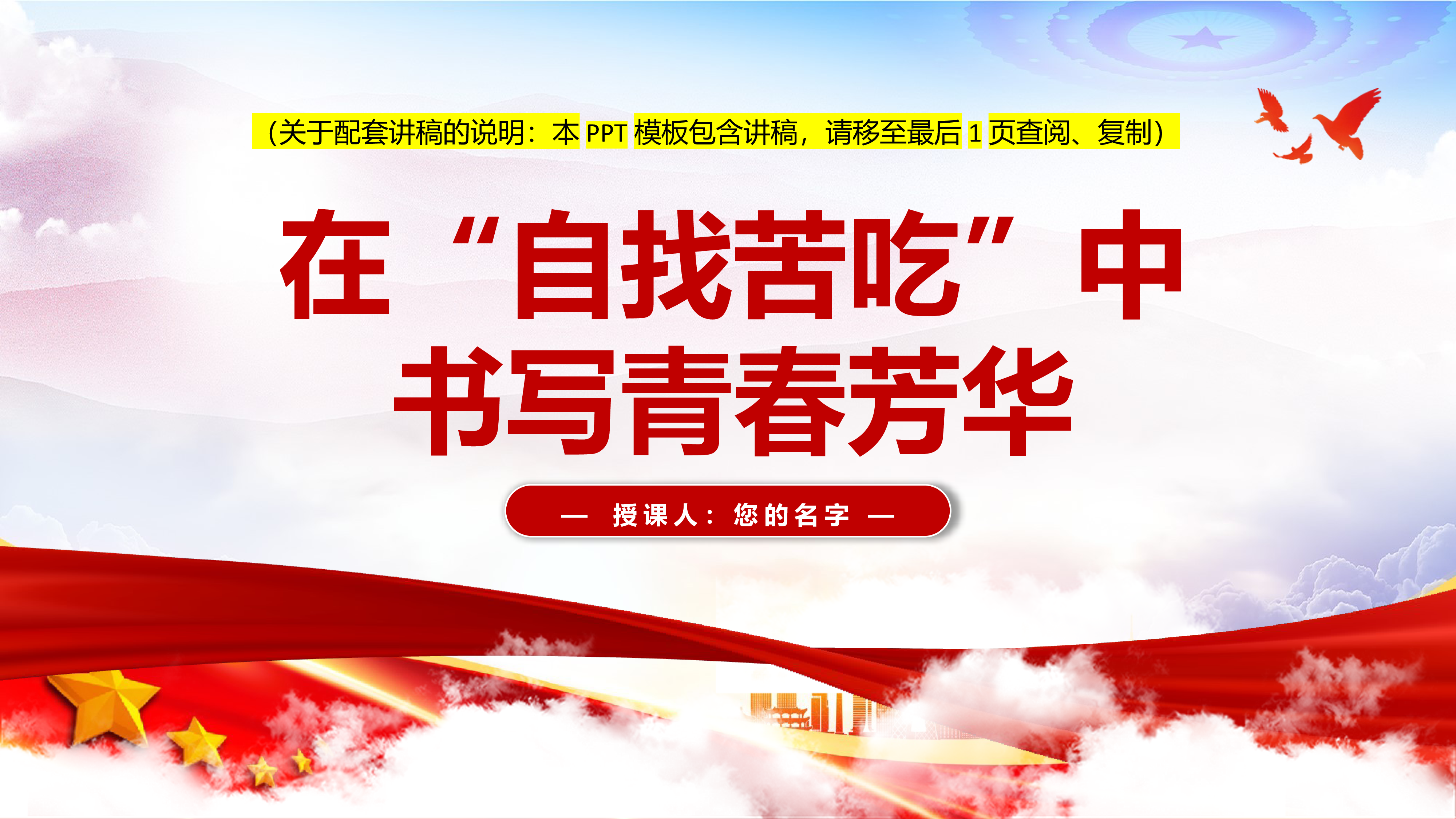 2024微党课在“自找苦吃”中书写青春芳华党课ppt模板(含配套讲稿)党支部团支部党员干部学习党课