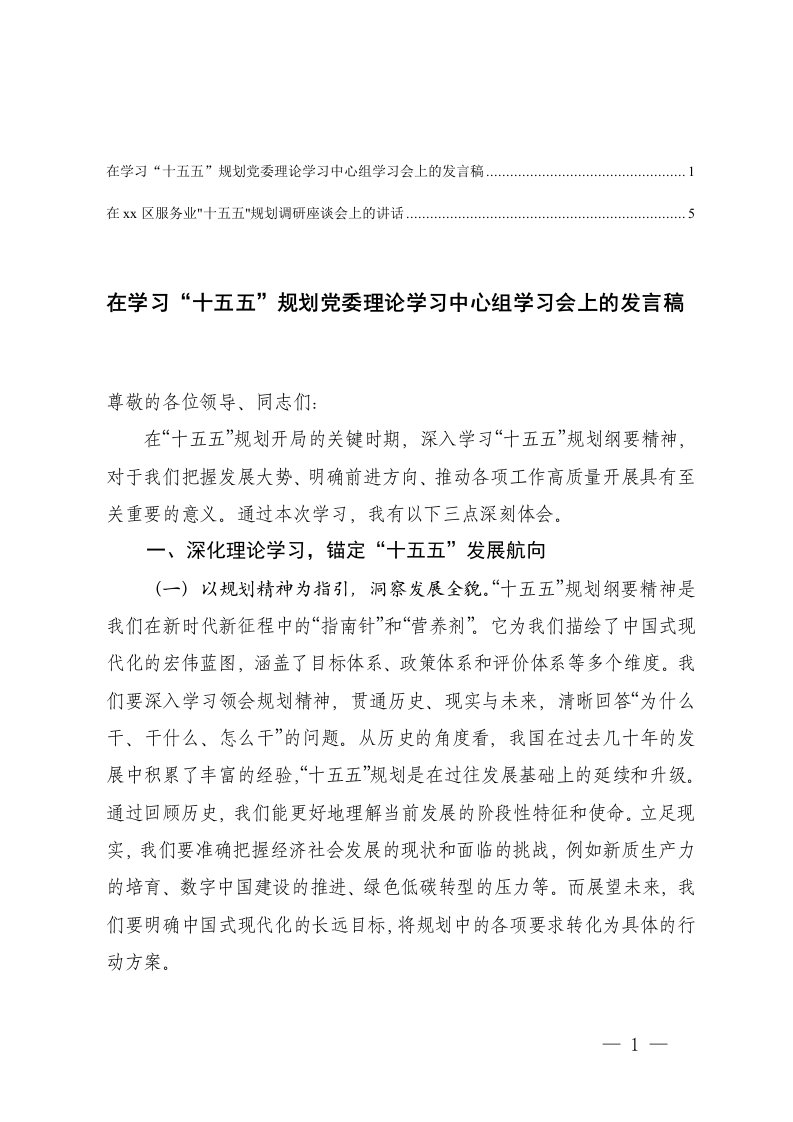 在学习十五五规划党委理论学习中心组学习会上的发言稿在xx区服务业十五五规划调研座谈会上的讲话