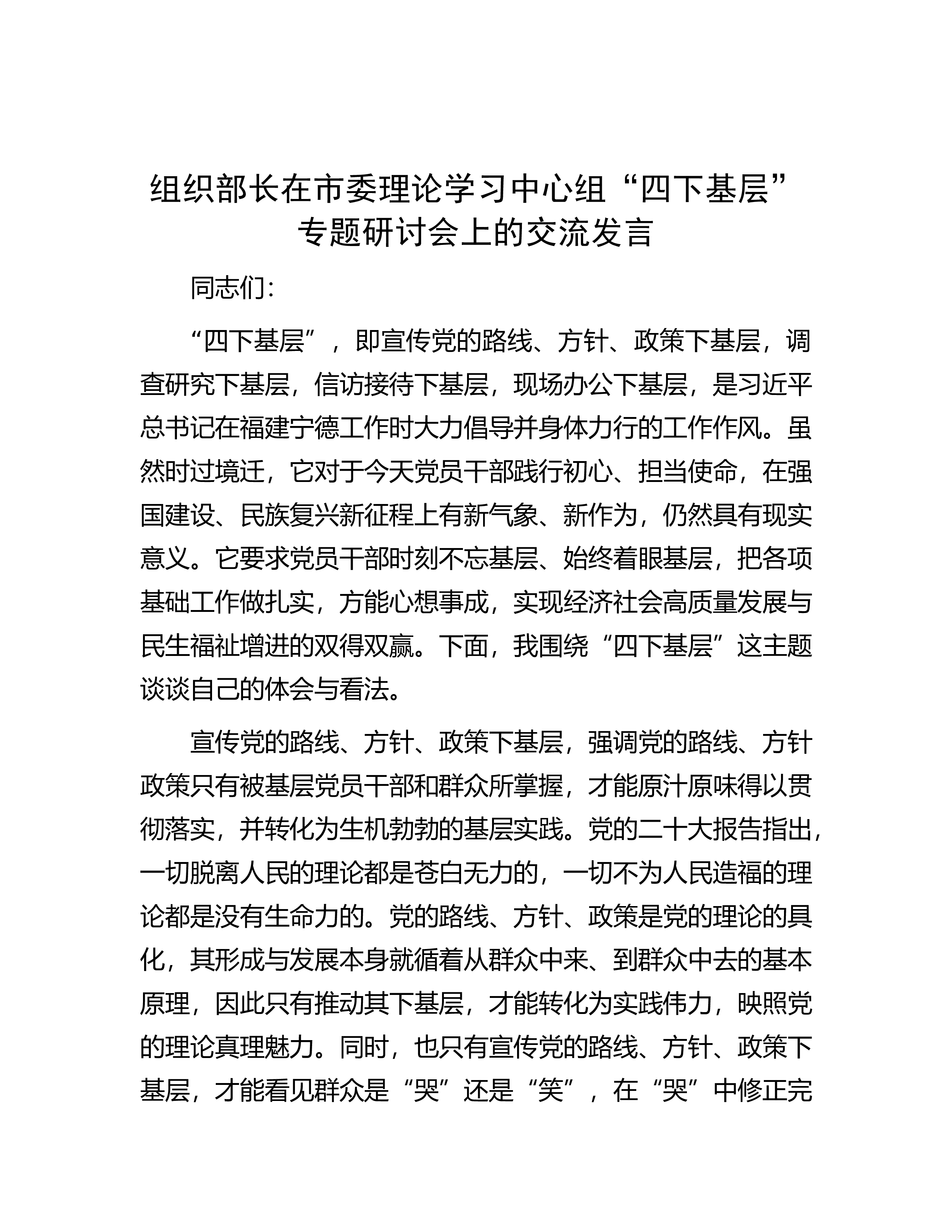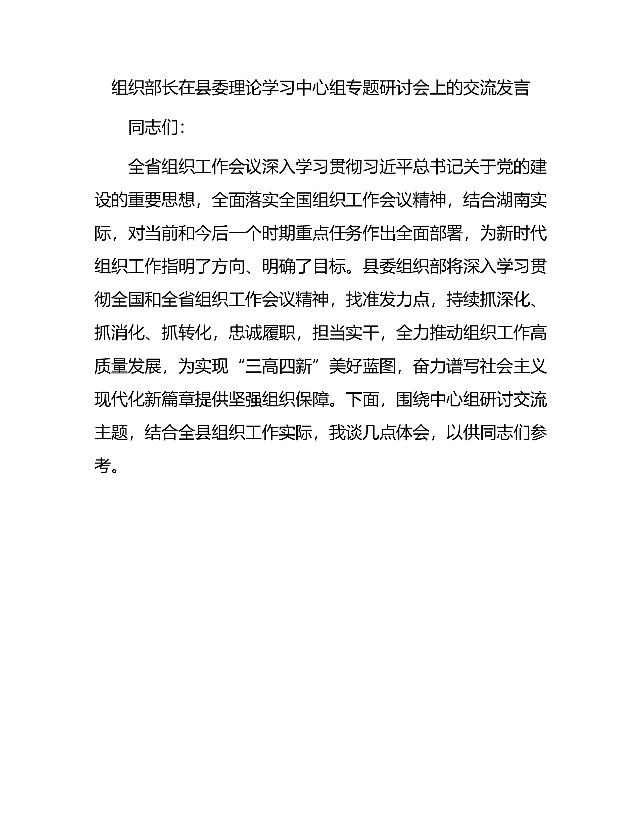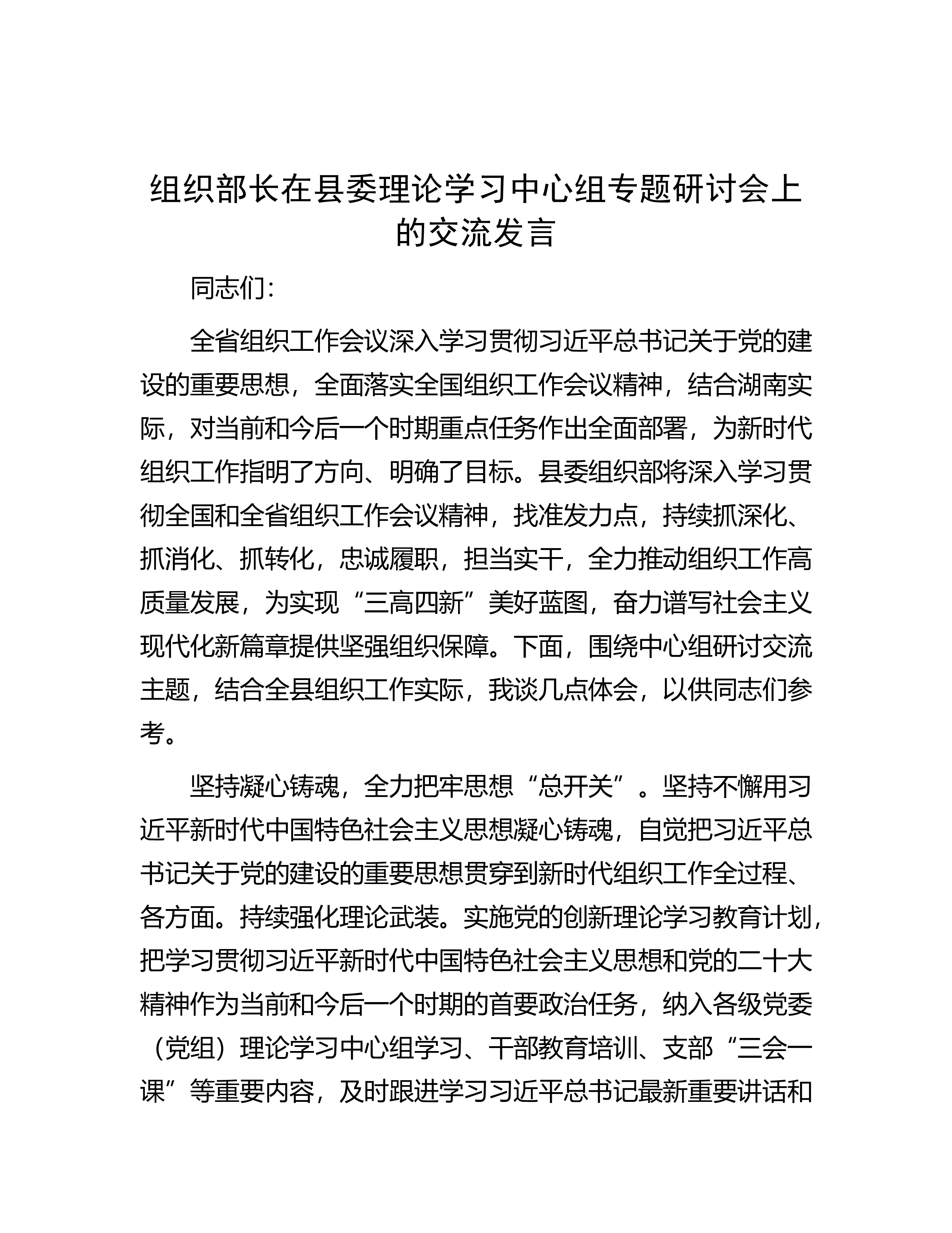 组织部长在县委理论学习中心组专题研讨交流会上的发言