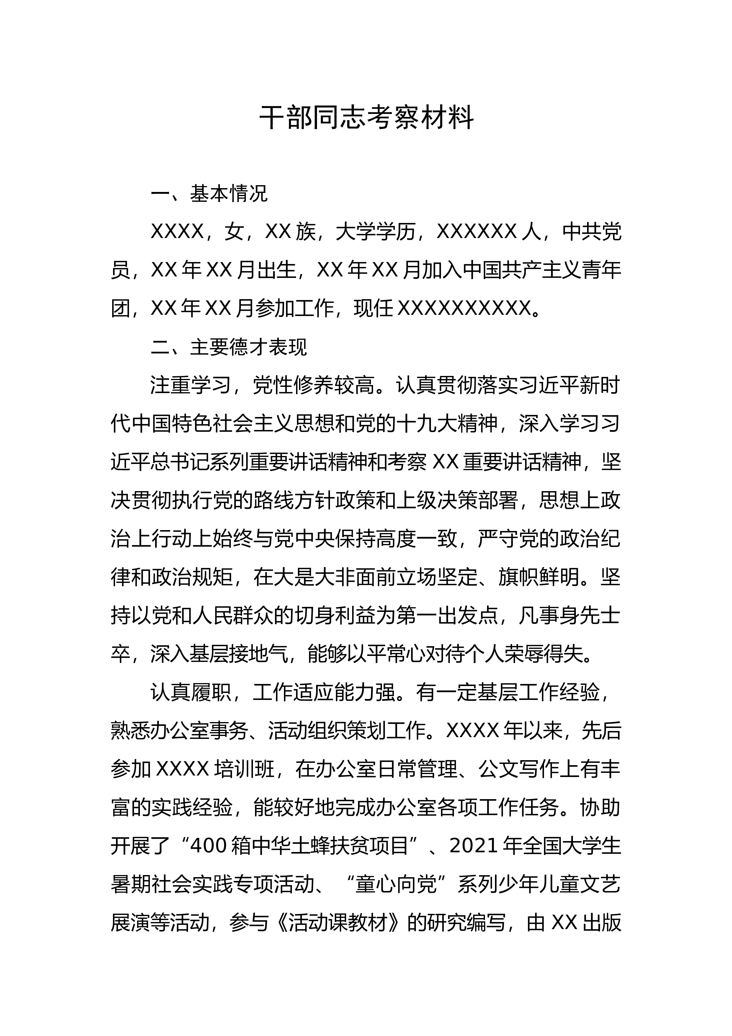 【组织党建】关于XX同志推荐任职的请示